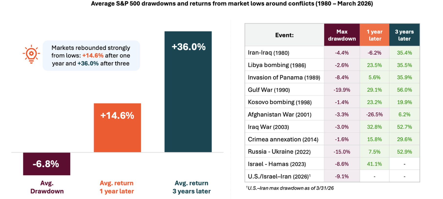 - Markets typically recover within a year after geopolitical-driven declines