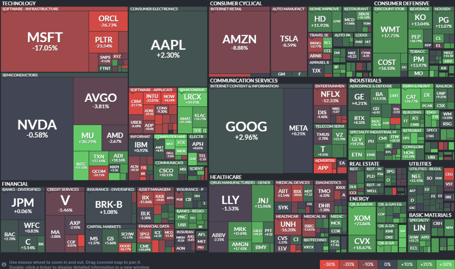 Market heat maps confirm this trend: many large companies are lagging, while smaller firms are showing widespread gains. This broadening participation is a healthy sign for long-term market stability.